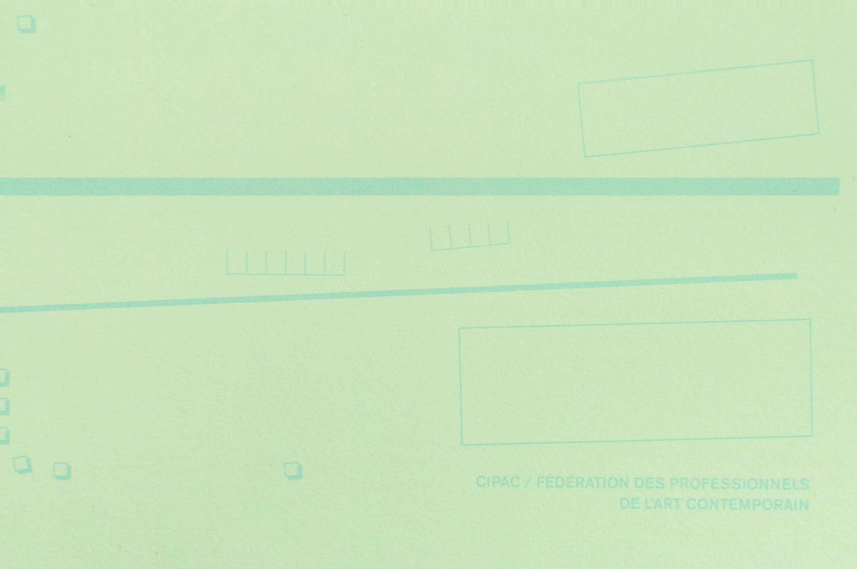 Together with Lawyer Agnes Tricoire, the Cipac created models of contracts designed for use by professional artists in the field of contemporary art. As these contracts are printed on request, it was necessary to design a media that could be printed again and again. Graphic codes contracts (boxes, blanks, dotted lines…) were playfully re-distributed within the space of the page. These signs, printed in ink mixed with a transparent base, does not compete with the overprinted text, while providing, nonetheless, a creative counterpoint to the formal rigor of the contract.