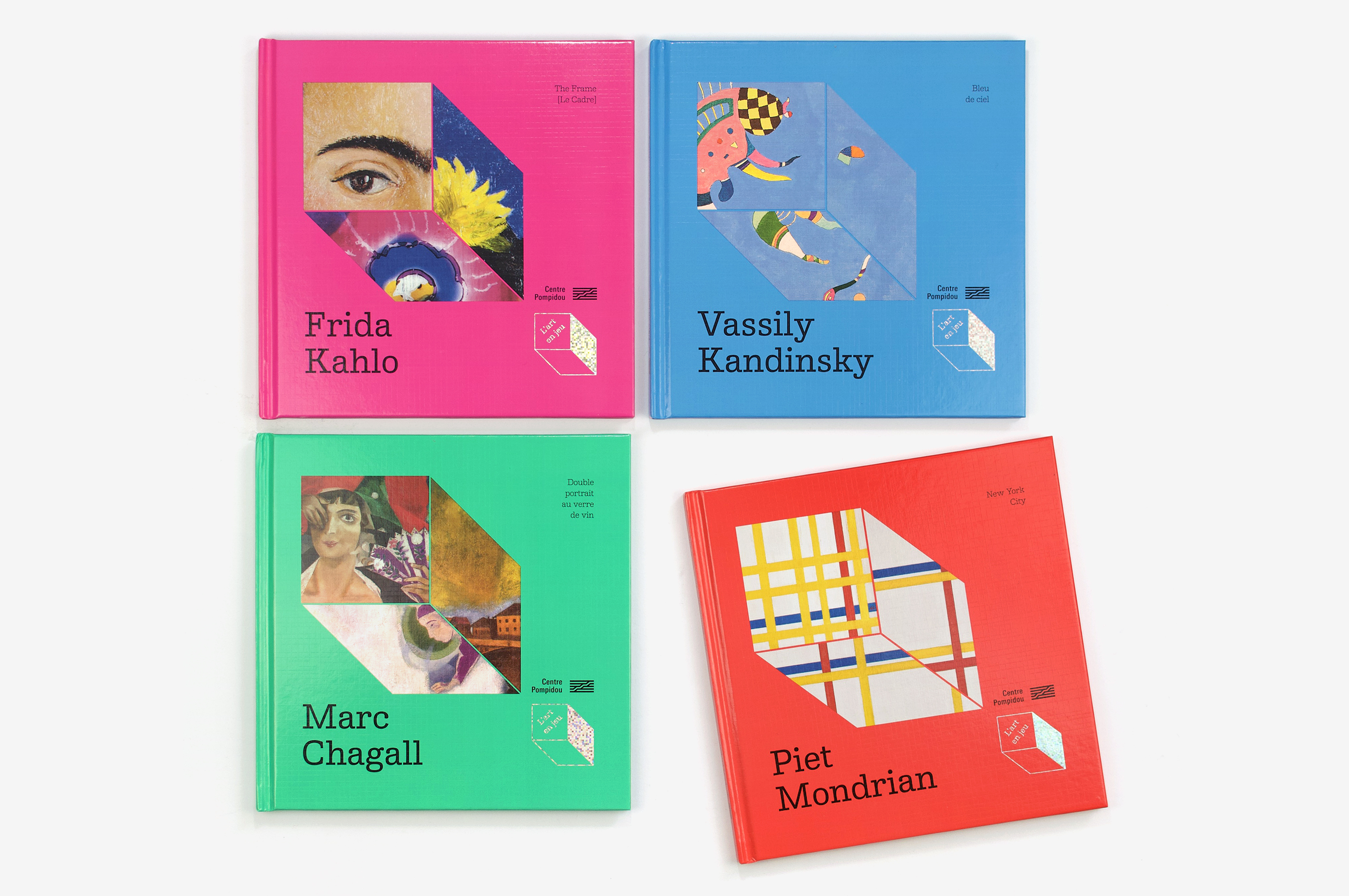 Le Centre Pompidou m’a confié la mission de remettre en selle sa fameuse collection jeunesse parue dans les années 80. Le principe éditorial est le suivant: dans chaque ouvrage, un auteur présente une œuvre de la collection du Musée, de façon ludique et singulière. Le graphisme a eu ici pour mission dépoussiérer visuellement la collection, mais aussi de traduire avec subtilité les intentions éditoriales, en évitant la surenchère de façonnage. Je me suis approprié les fondamentaux de l’identité visuelle initiale (format, présence du carré en perspective…) pour articuler le projet graphique. En regard de cette continuité, j’ai envisagé certains aspects de façon totalement nouvelle. L’usage d’un seul caractère typographique Album (dessiné par Thomas Huot-Marchand) permet ainsi d’éviter une certaine cacophonie visuelle, et la couleur est désormais utilisée comme un outil pour déployer la collection et structurer les ouvrages. Le choix d’une cinquième couleur en complément de la quadrichromie permet une immersion chromatique en résonance avec l’œuvre. Le logotype holographique en couverture fait un clin d’œil à l’esthétique mainstream des cartes à collectionner.