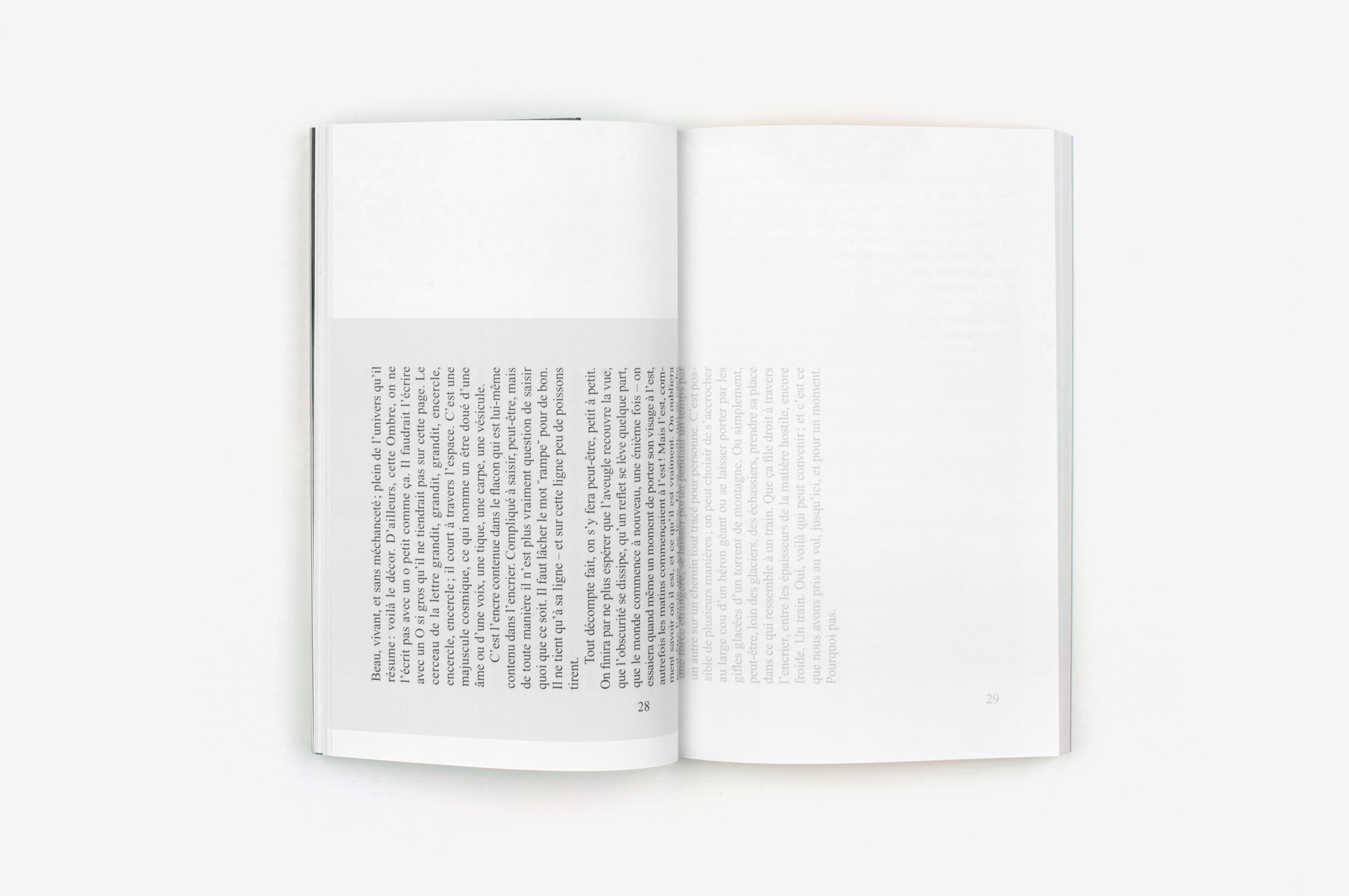 This book is the fifth work in the Collection Chaumont: fiction. Des livres bizarres, begun during my residence in Chaumont in 2007. It was the first novel by the multidisciplinary artist Joseph Schiano di Lombo and appeared more than ten years after the first four books in the series. The book concludes a publishing project that has paved the way for many personal publishing projects. In its graphic design, the book has the archetypical appearance of a detective novel in its most mainstream form. At the same time, the book’s design is strangely confusing, giving it a false dimension: the spine, the back cover, the reading direction… the reader is deceived as much by the layout as by the text. The traditional colour scheme of the detective novel is present, but made restless by overprinting. The cracks inside the book are highlighted with white ink. Hot gold fingerprints on the cover lead us to a four-handed culprit!