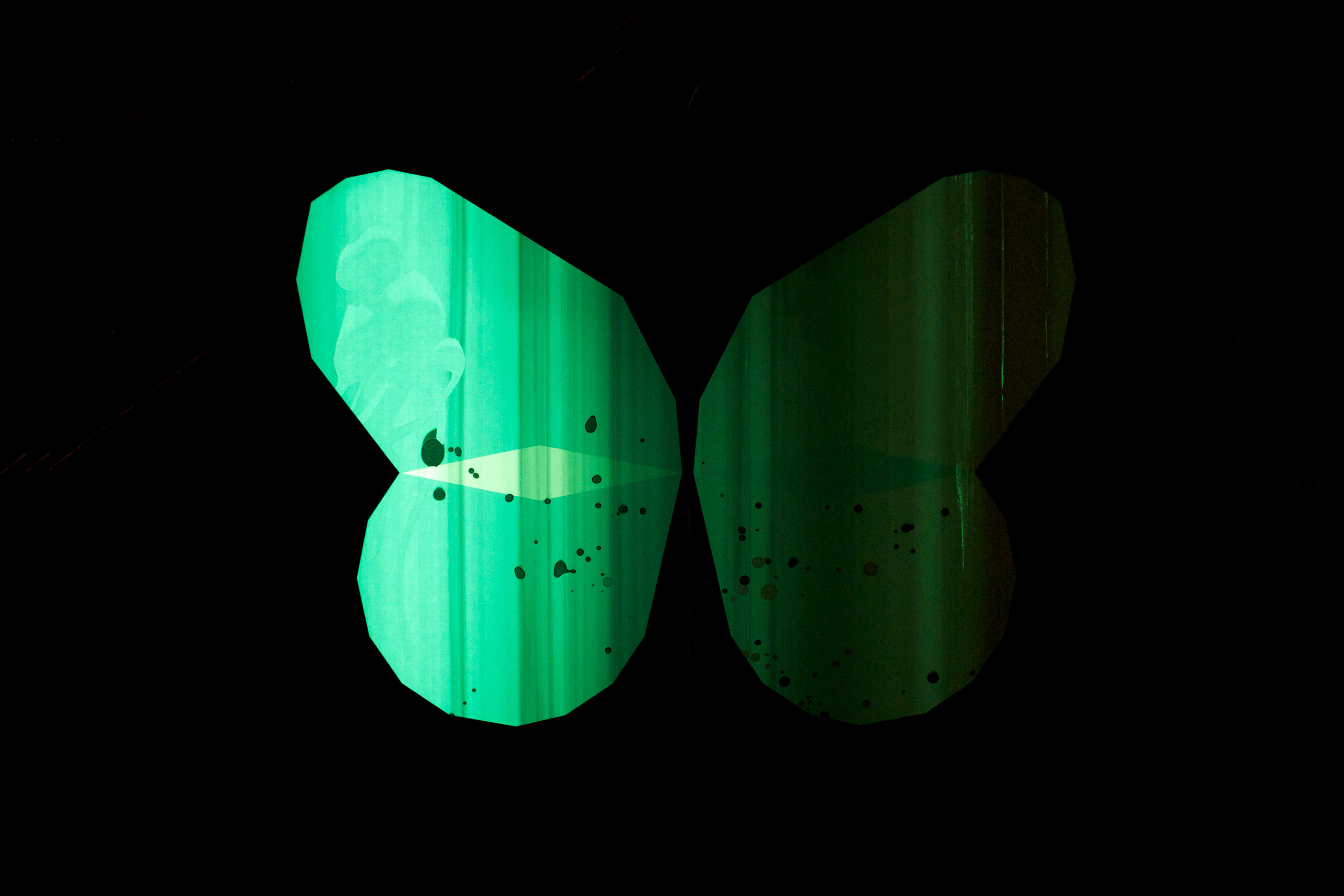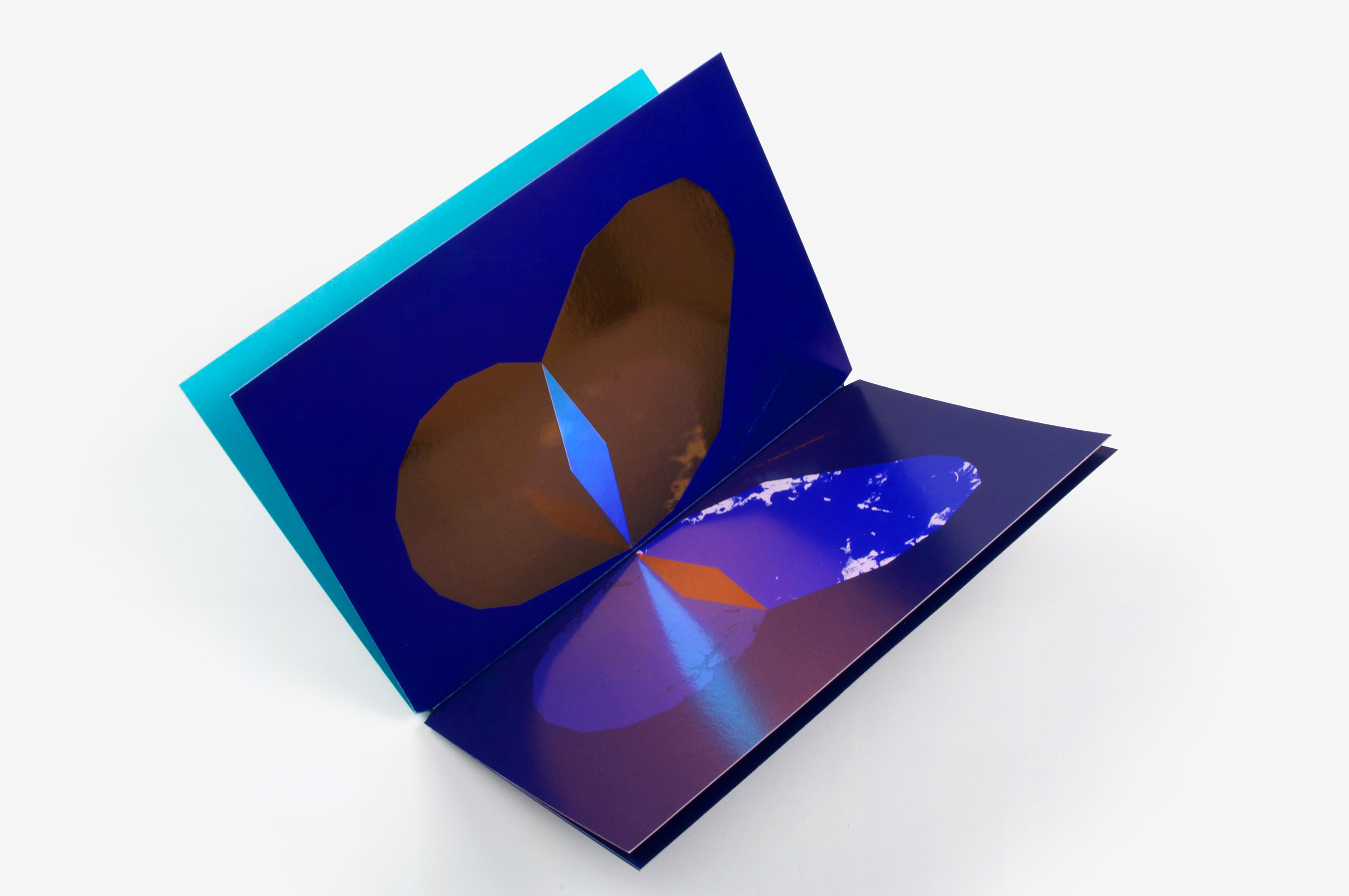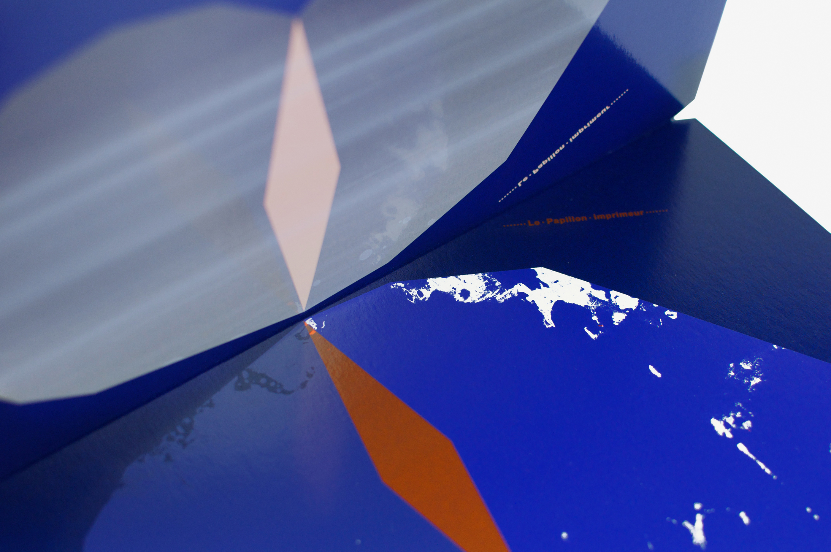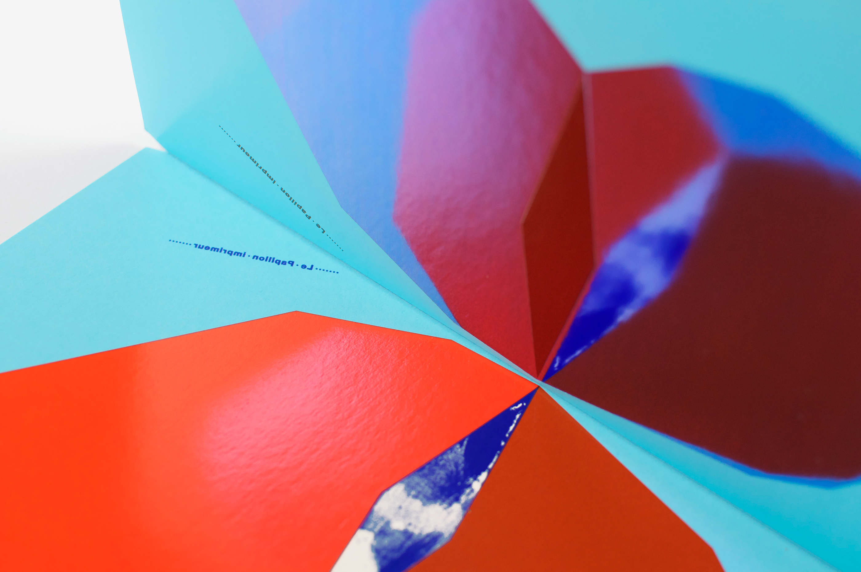Ce livre a été imaginé comme un prolongement éditorial des affiches Papillons (jour et nuit) conçues suite à l’exposition Un Imprimeur au Havre. Les pages du livre, imprimées dans différentes techniques (sérigraphie, offset, dorure à chaud), peuvent être assemblées librement pour créer de nouvelles combinaisons d’ailes colorées, à la manière d’un nuancier. Les aléas provoqués au cours de l’impression rendent chaque livre unique. Le livre tient debout, la partie jour et la partie nuit (phosphorescente) étant réparties de part et d’autre du pli central. Le titre, qui figure les antennes, est imprimé sur chaque page, comme un mantra dont la répétition et la symétrie renvoient au mouvement d’impression. Le livre est dédicacé à ma maman Manu qui m’a légué le goût des belles pages et m’envoie régulièrement des (vrais) papillons!
