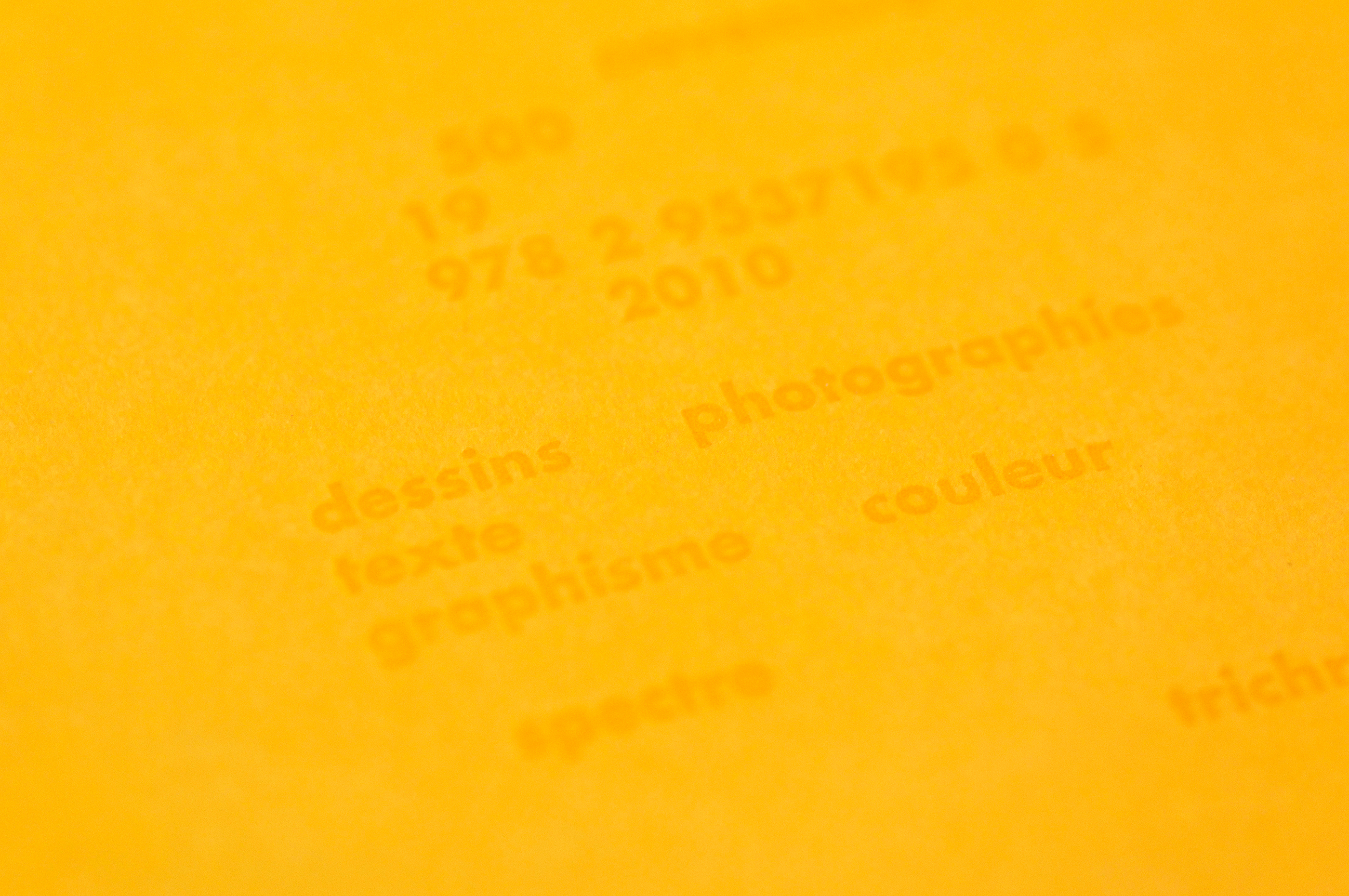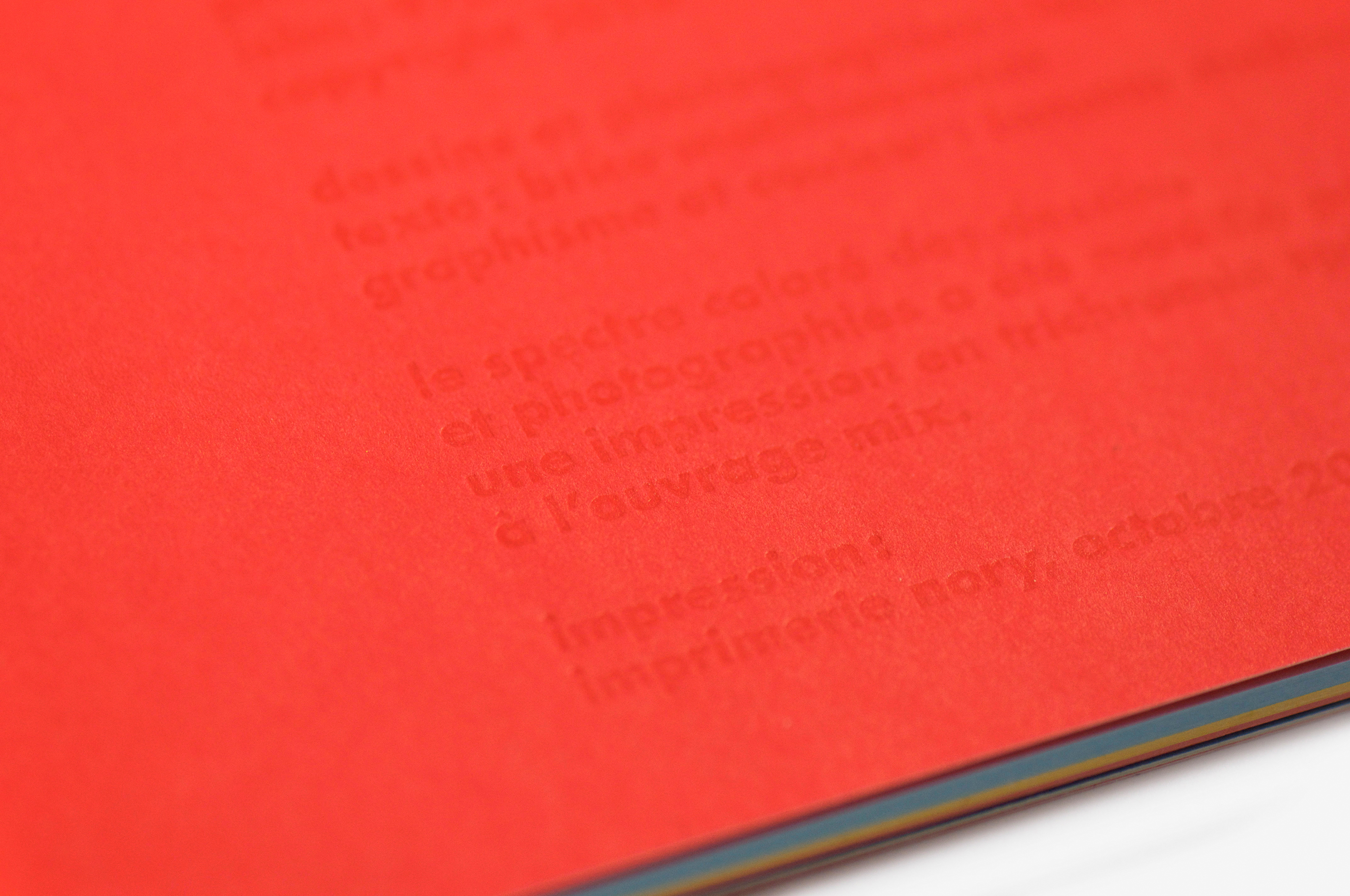 Mix is a joint project between a visual artist, a writer and a graphic designer. Working with Laurence Lagier’s drawings and photographs related to networks and temporality, Brice Matthieussent wrote a fiction: Lomo reticulens. I worked around all of these elements to design the book, articulating spot colors for this book made with 6 hands. The book is printed on poster paper, the front of which is literally painted in blue, yellow and red. The three-color printing matches the colors of those specific papers and offers the work to the viewer through this strange spectrum. The covers follow each other, gradually revealing the title. Color defines the entire book, in its organization, its ink, its materiality, and offers the content throughout its bright prism.