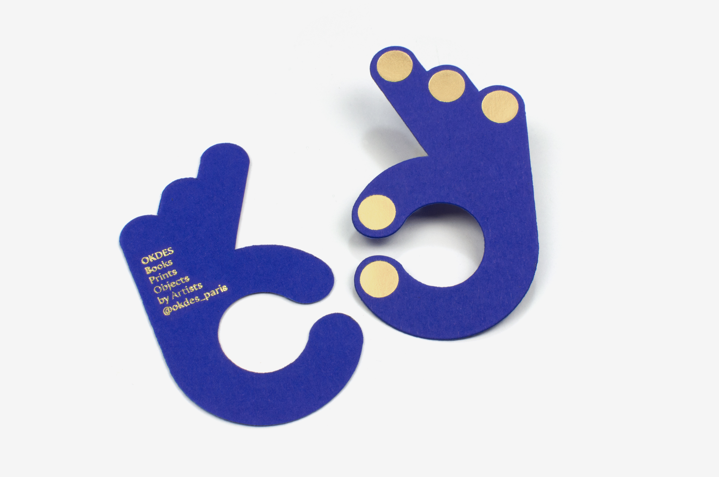 Conçu comme un nuancier (et pouvant servir de petit poinçon), le logo de l’éditeur Okdes reprend le geste caractéristique si usité au Japon, qui fait image de façon universelle. Les cartes de visite et les pin’s lui permettent de circuler de mains en mains…