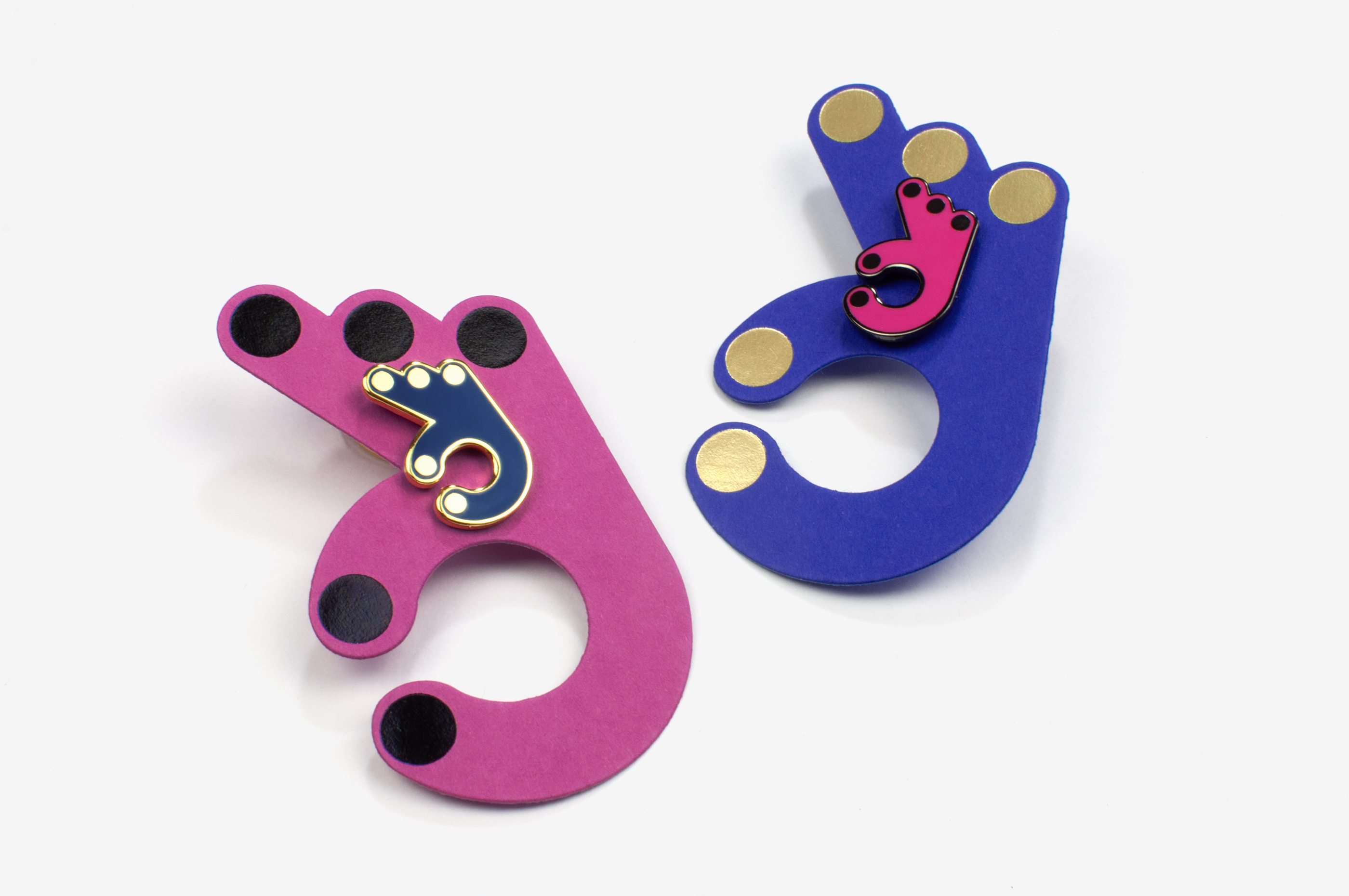 Designed as a colour chart, the logo created for the Okdes publishing house echoes a commonly used and universally recognised Japanese gesture. Its appearance on business cards and pin badges further publicises the company.
