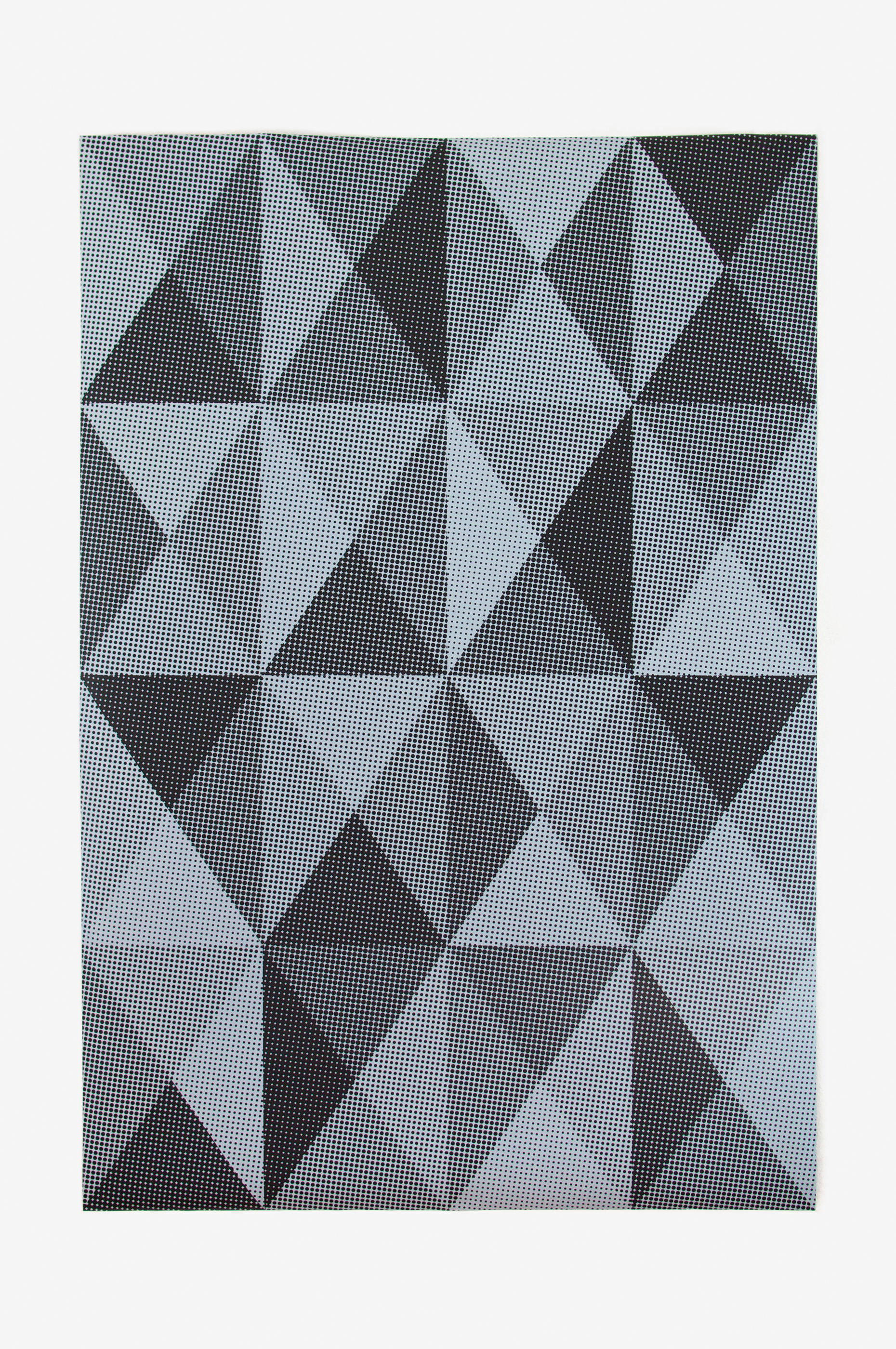 Avec Tramatic, je réactive le projet Multipli. Si le principe du pliage des affiches pour révéler les lettres reste le même, la plasticité est très différente. La structure est ici marquée par des champs géométriques, colorés au recto et noirs au verso. Les lettres sont imprimées en sérigraphie dans une trame maximale. Il en résulte une démesure qui joue avec la lecture des formes et des couleurs, un clin d’œil à la grosse trame d’impression des affiches publicitaires mainstream.