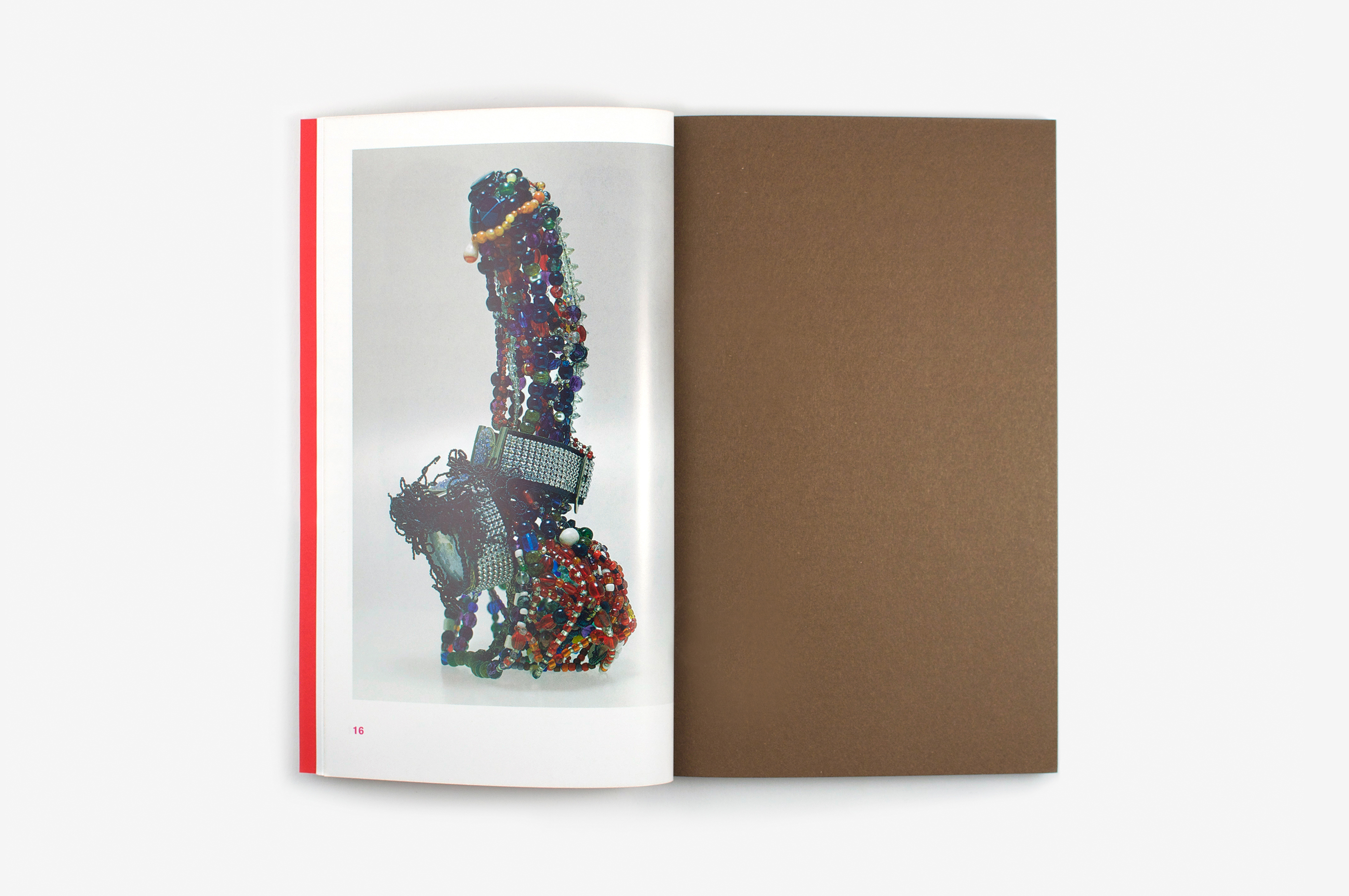 This book about the artist Bruno Pélassy who died of AIDS in 2002 is based on a text by Marie Canet that examines the links between his work and his illness. In format and layout, the softback book has been designed to be read. The flesh-coloured leatherette cover (laminated onto red paper) bears the name of the artist, the letters hot gilded and surrounded by small flames. The series of images that open the book reveal over 16 pages the astonishing delicacy of Bruno Pélassy’s work. The text follows, arranged on the page like a novel (but printed in colour). Printed on each right-hand page is a detail from stills of the film Sans titre, sang titre, cent titres, a work representing the artist’s manifesto but destined to disappear because the video tape becomes ever more fragile at each showing. This work runs through the book like a flip book, fixing into the material of the book the idea of temporality that consumes the artist’s work.