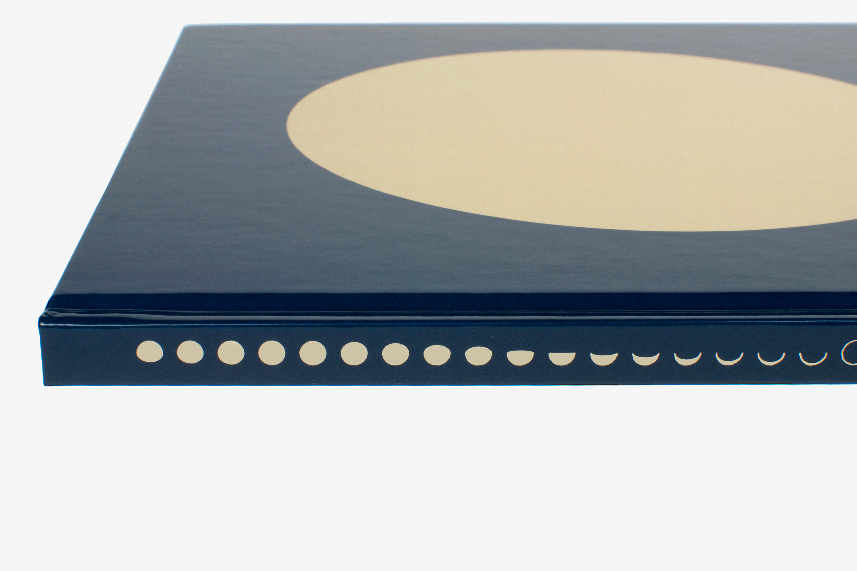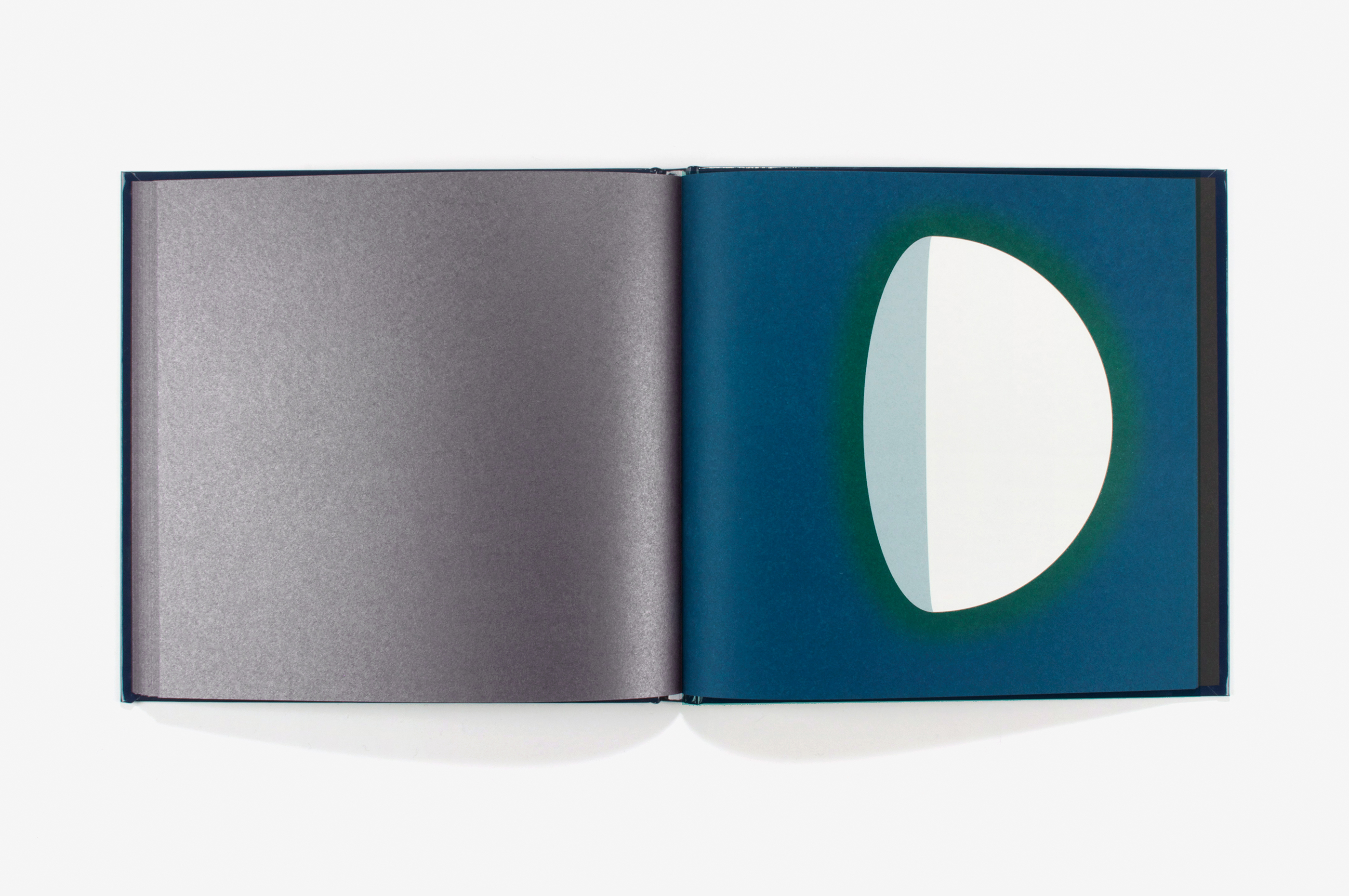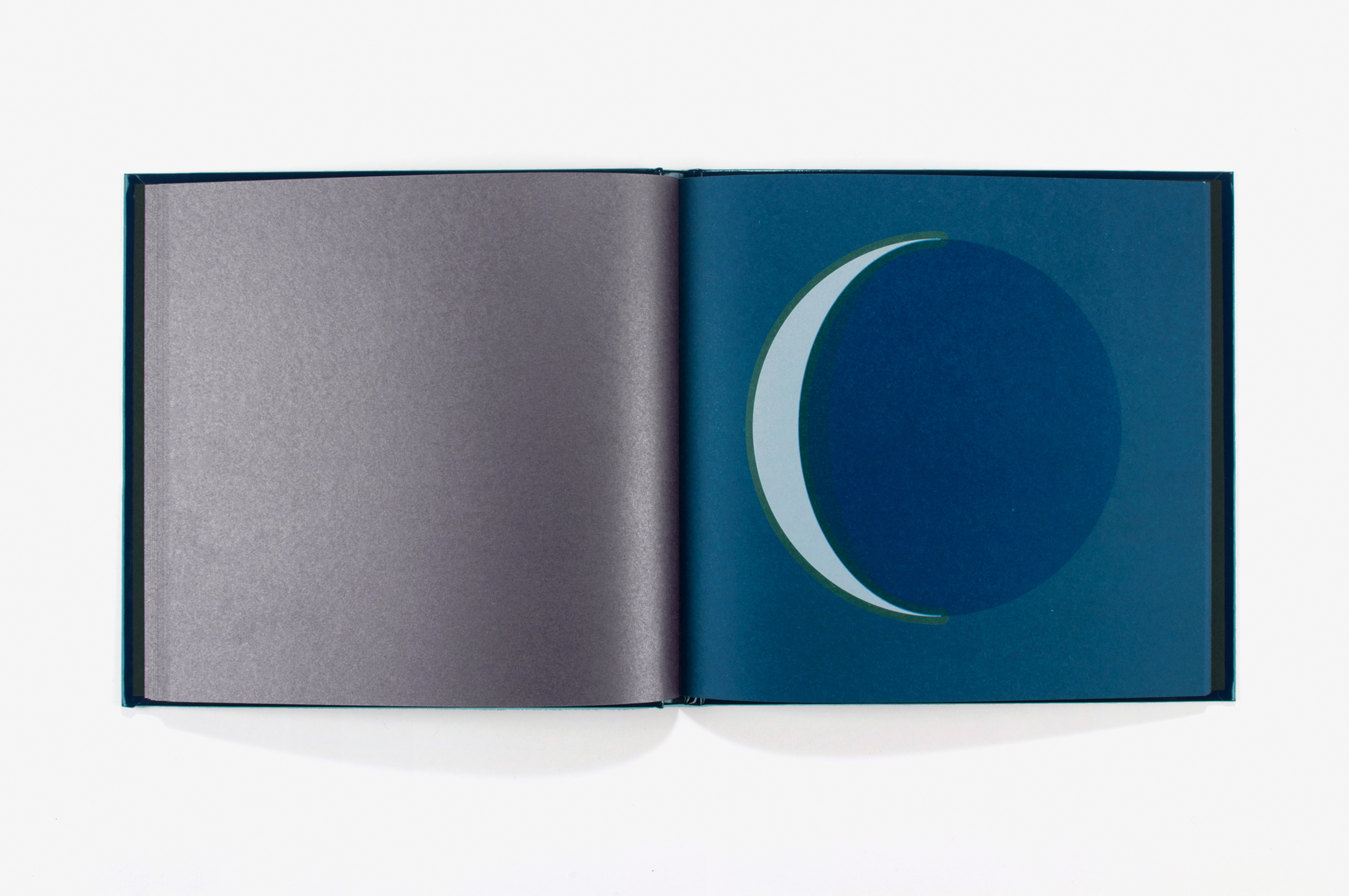Not quite the same, but not entirely different… This second edition of the book Dans la lune offers the opportunity to “shift the spectrum”. The range of colours (inks, end papers, hot foil…) is new, the order of the moons has been changed around and… a new moon makes its appearance!