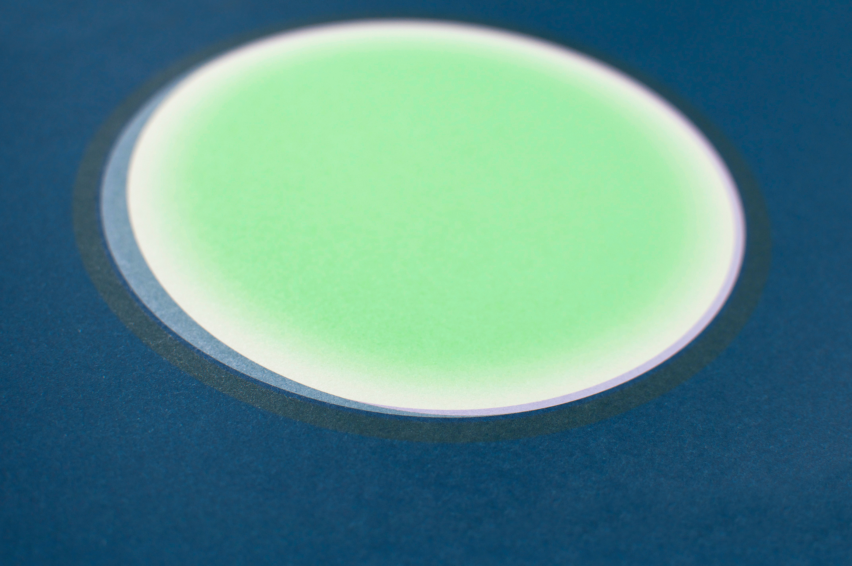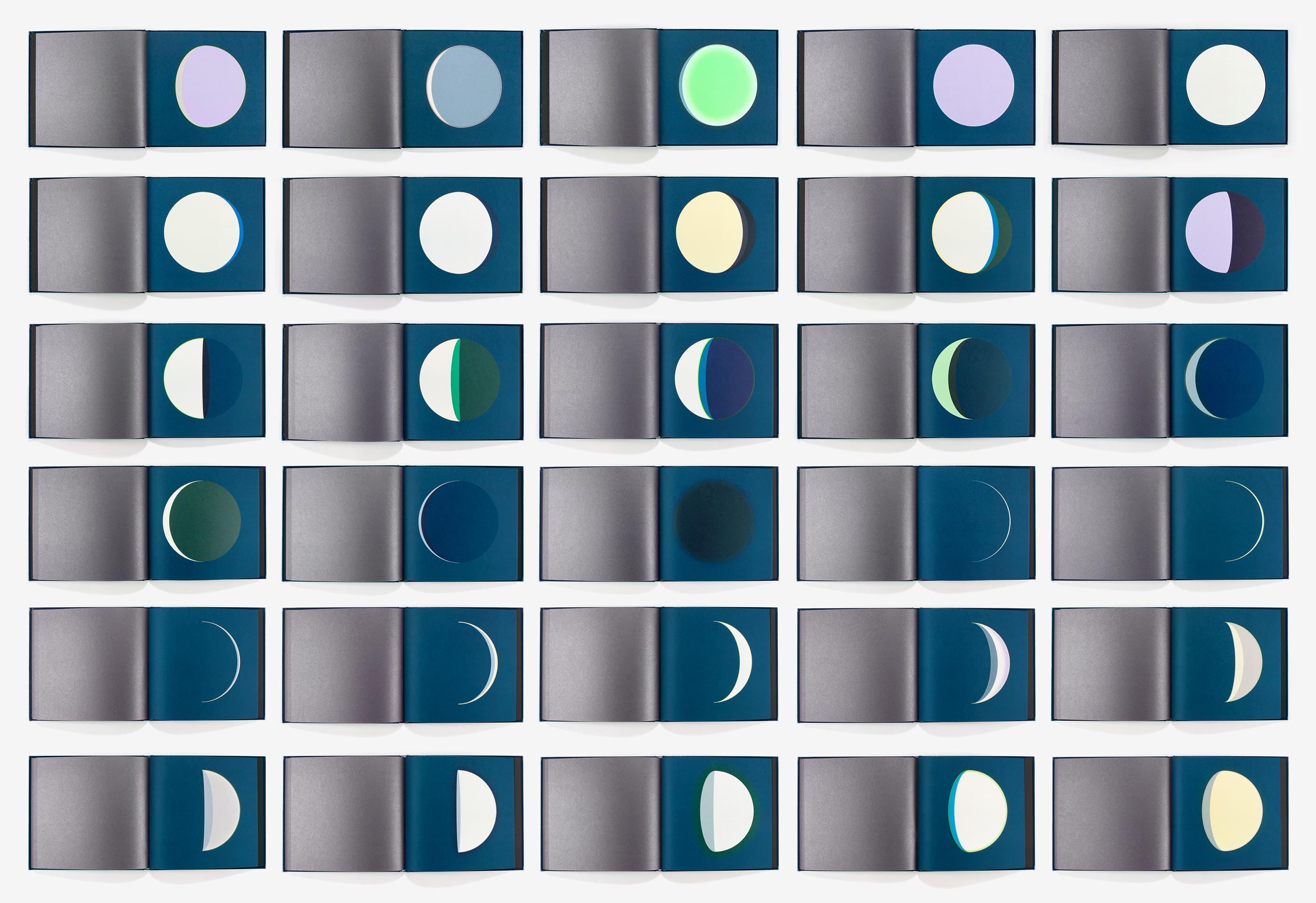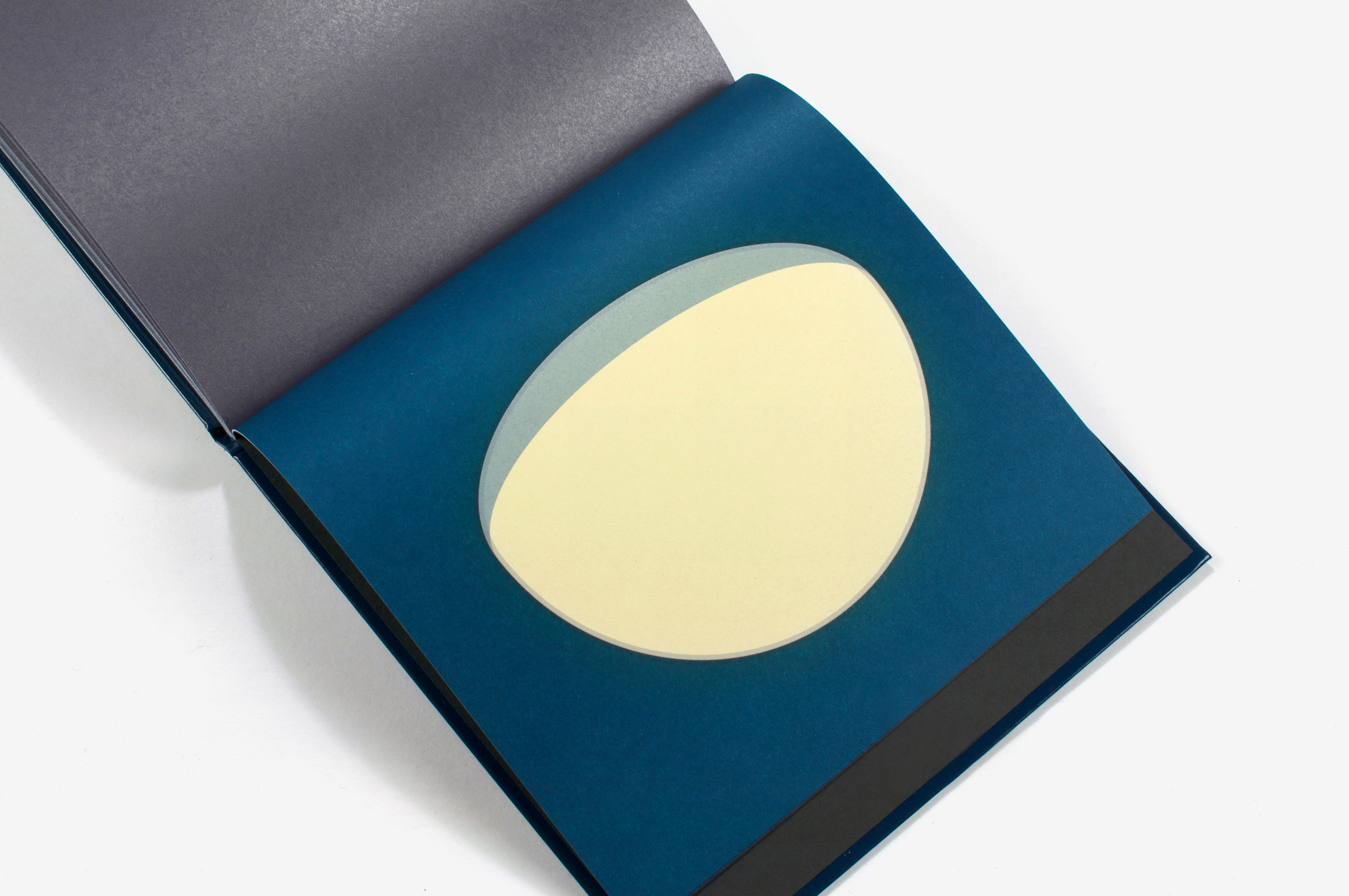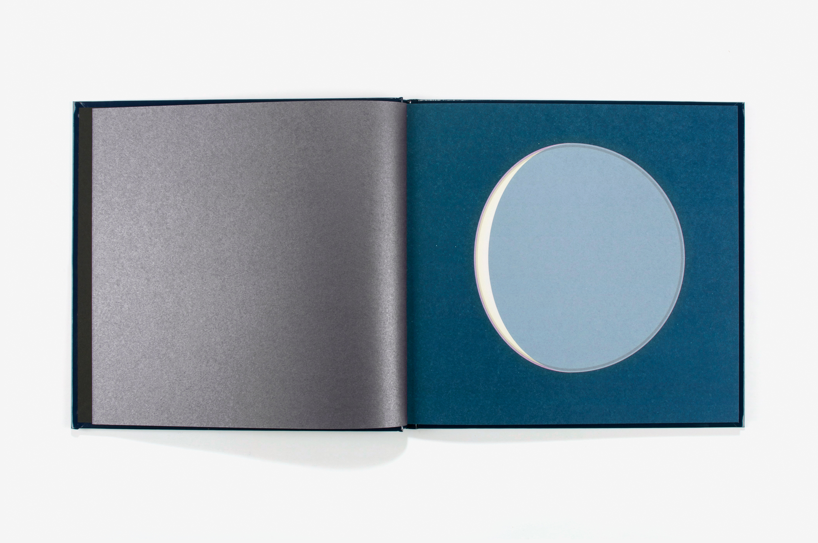 Not quite the same, but not entirely different… This second edition of the book Dans la lune offers the opportunity to “shift the spectrum”. The range of colours (inks, end papers, hot foil…) is new, the order of the moons has been changed around and… a new moon makes its appearance!
