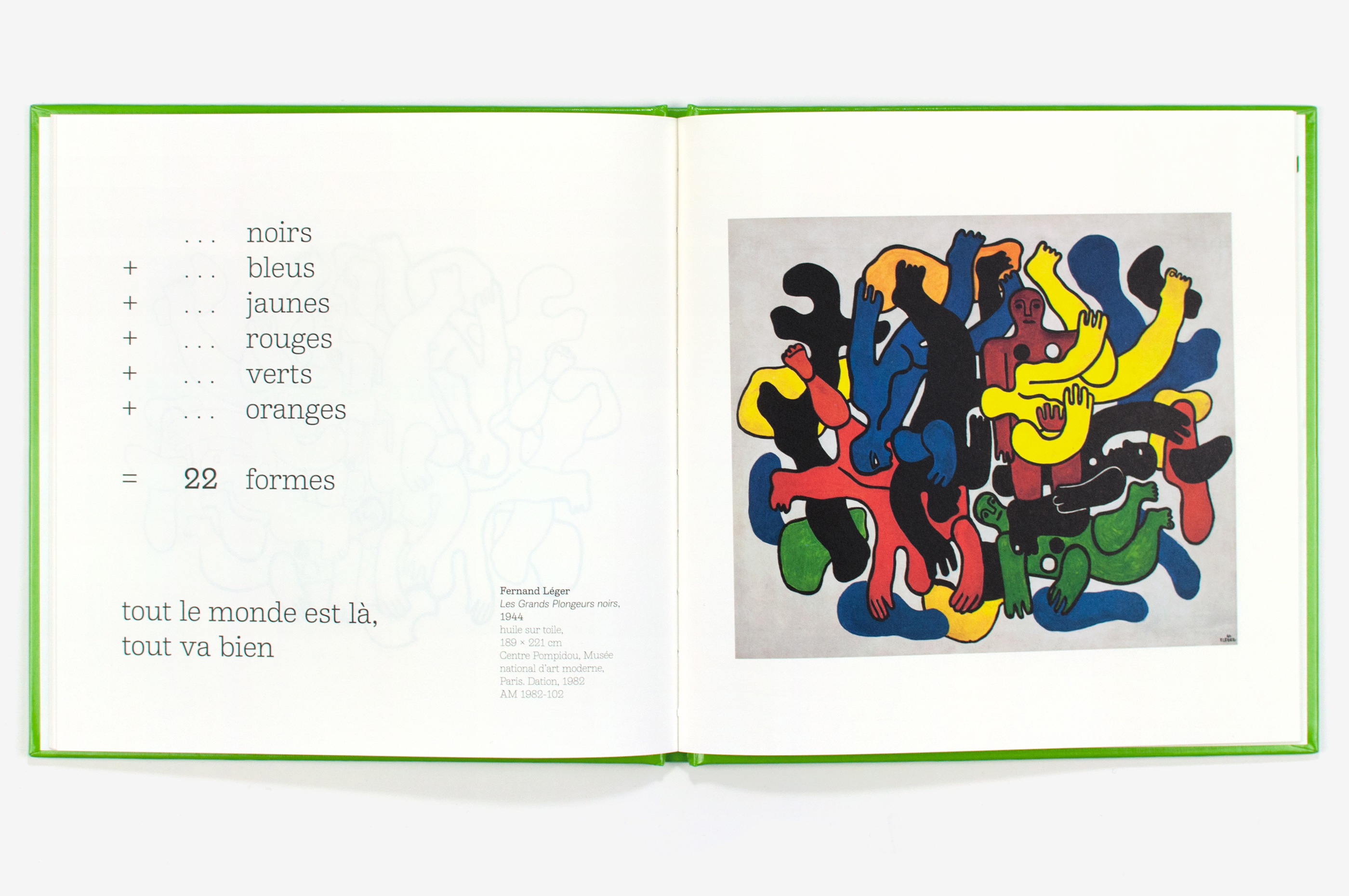 The Centre Pompidou entrusted me with the task of reviving its famous children’s collection published in the 1980s. The editorial principle is as follows: in each book, an author presents a work from the Museum’s collection in a playful and unique way. The task for the graphic designer was not only to update the visual appearance of the collection, but also to subtly convey the editorial intentions without making them too obvious. In developing the project, I started from the fundamentals of the initial visual identity (format, presence of the square in perspective, etc.). While bearing this continuity in mind, I approached certain aspects in a completely new way. The use of a single typeface avoids visual confusion while colour is now employed as a tool to display the collection and structure the books. The choice of a fifth colour in addition to the four-colour process allows a chromatic immersion that resonates with the work. The holographic logo on the cover is a reference to the popular hobby of card collecting.