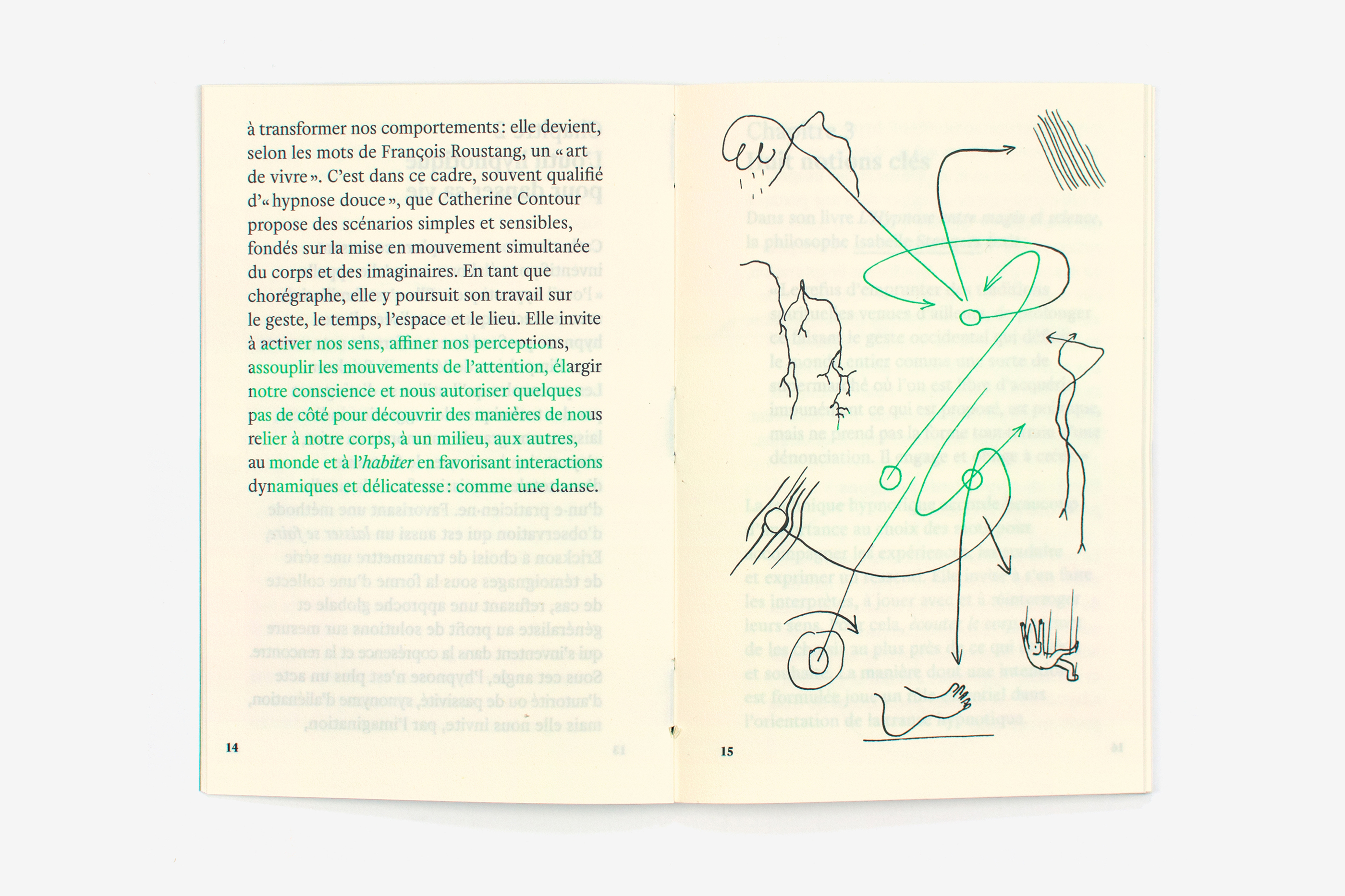 This first collection of books published by 369 examines various collective initiatives and their responses to the upheavals in modern society. Taking the form of field research, these Manuals are further enriched by practical resources, diagrams and drawings. The books are modest in appearance, small, with no cover and using only one type of paper with the stitching of the signatures visible. A transparent dustjacket with the title printed on its spine makes up for the lack of a cover. They are printed in two colors: the first, darker color is used for the main text while the second, brighter color is used to emphasize particular passages (headings, quotations, diagram details, etc.). These markedly defined areas of color serve to highlight the content and different sections of the book. Here color is a tool to be used manually. The unique classicism of the Helvetius (205TF) font is very simply laid out on the page, providing a contrast with the book’s unusual use of color.