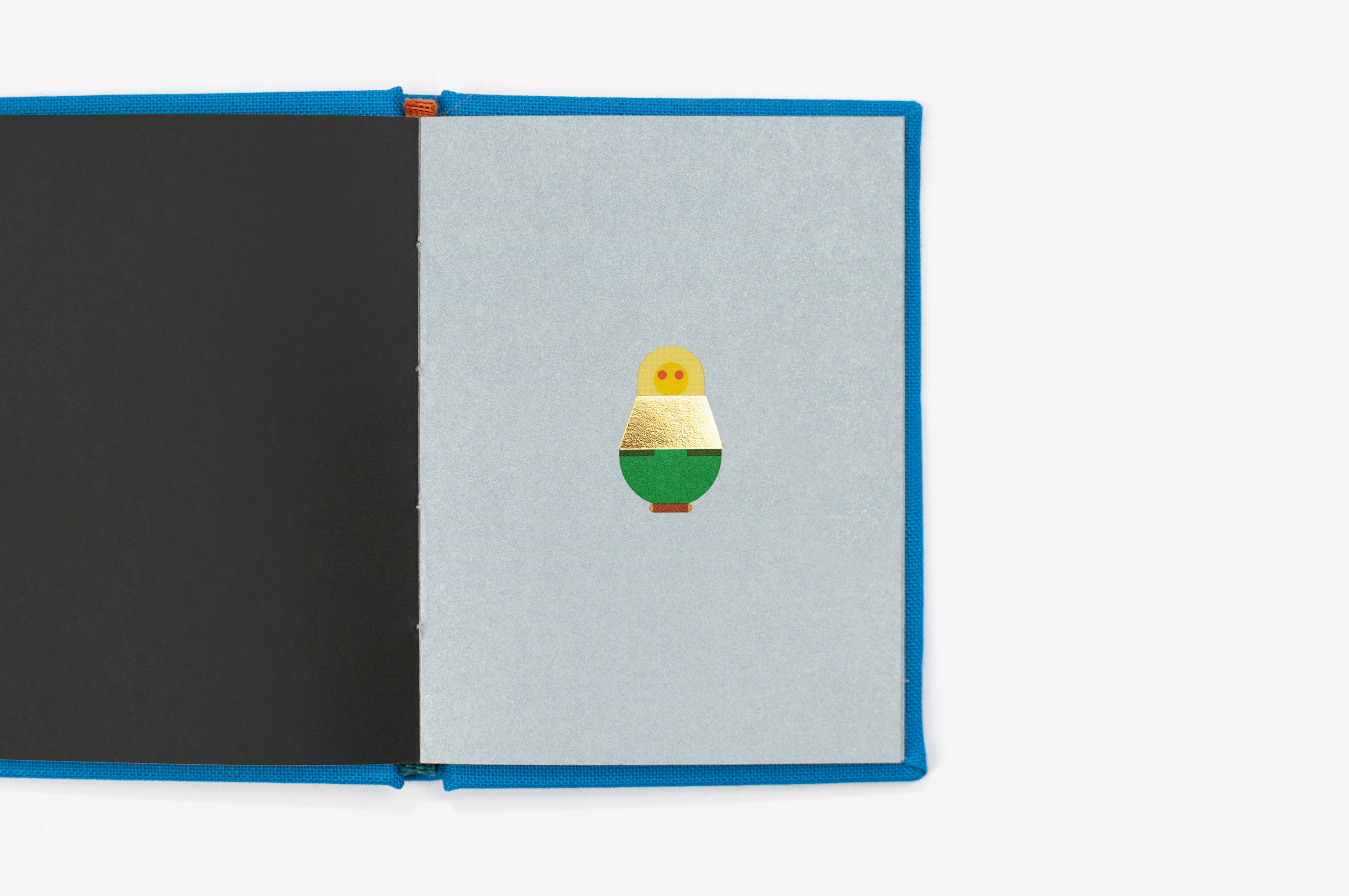 Matriochka épouse la forme du mini-livre pour raconter une toute petite histoire. Au fil des pages, des poupées, telles des icônes modernistes, rapetissent, encore et encore… Les stigmates de l’impression (trame, recouvrement, foulage…) deviennent les apparats de poupées minuscules, jusqu’aux limites de la perception. Ce livre, dans lequel la dorure à chaud saute une génération, nous parle de singularité et de transmission…