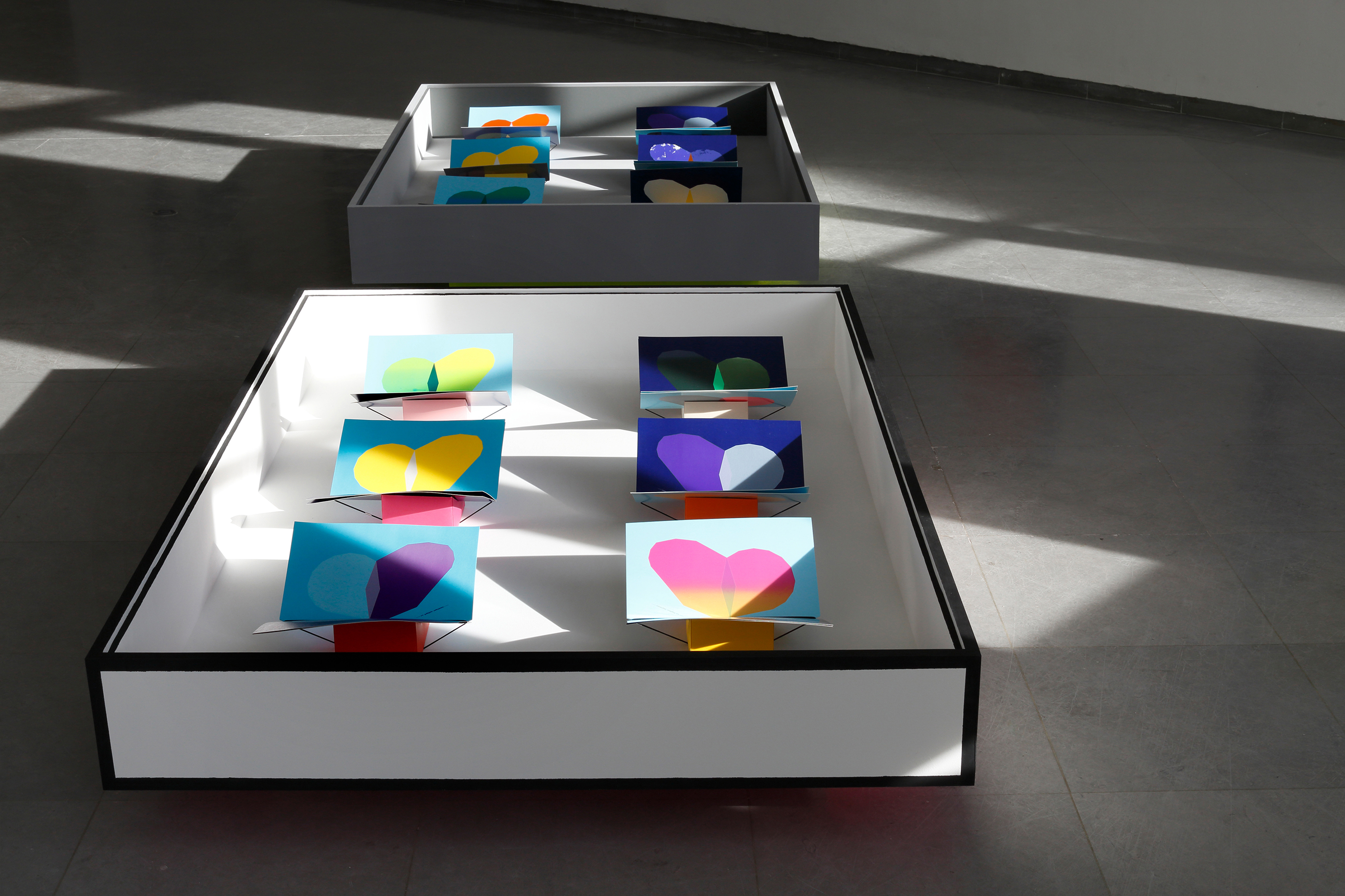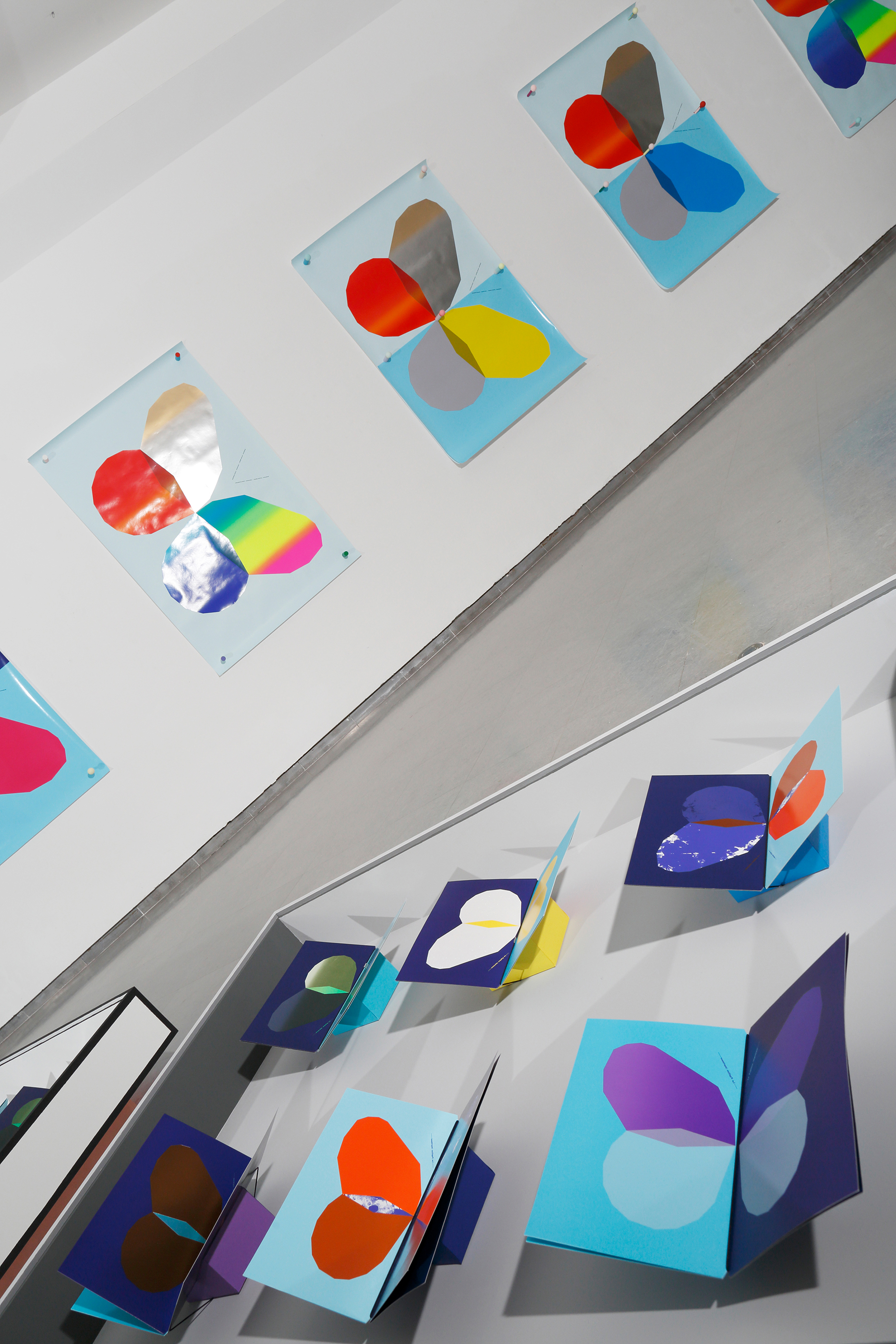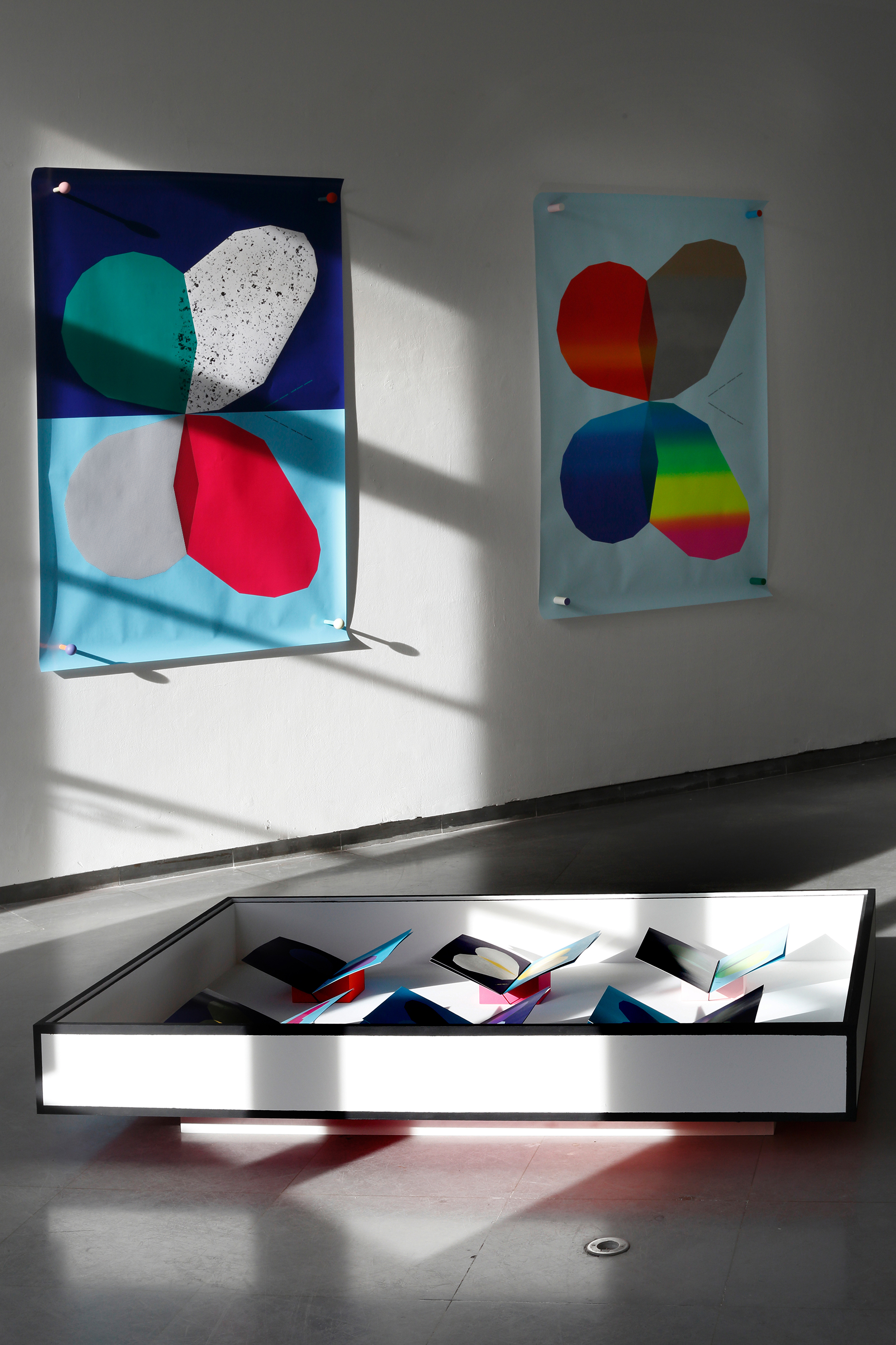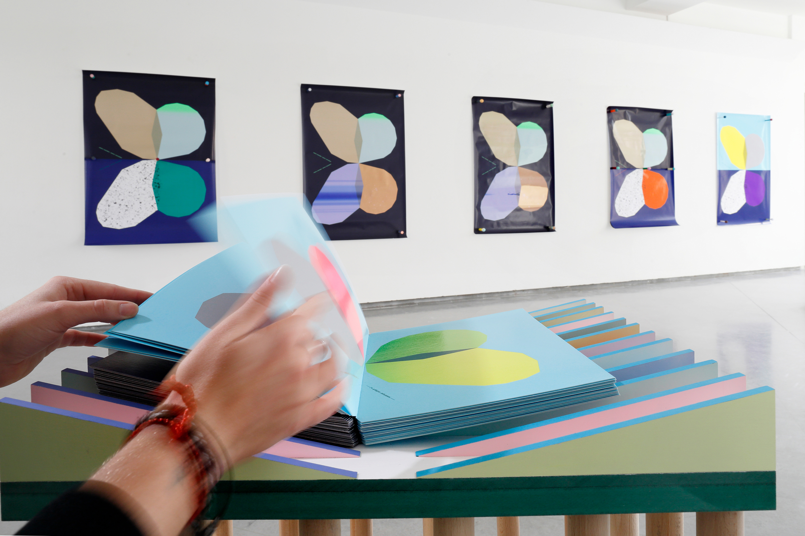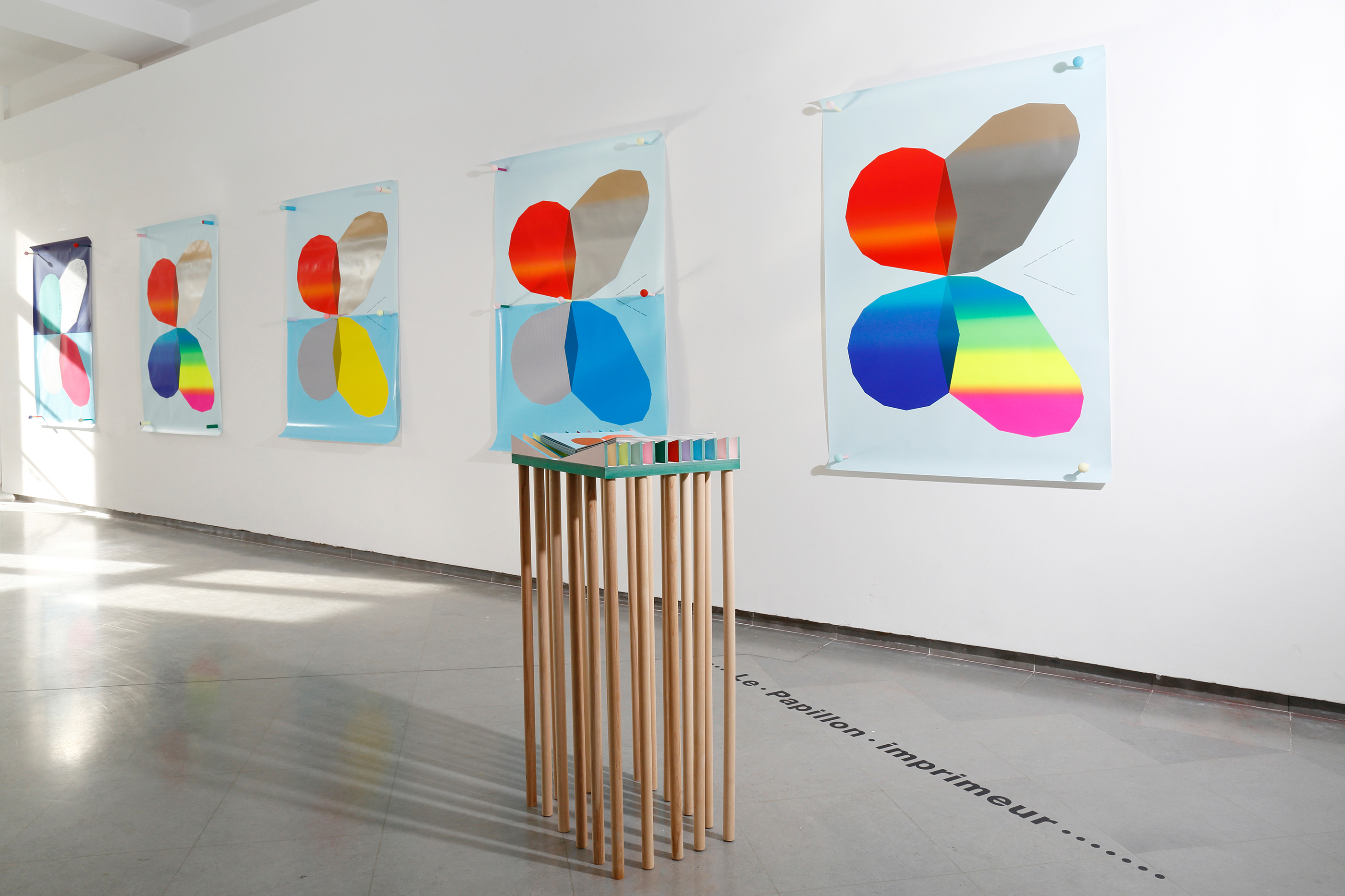 Cette exposition rejoue le projet Pangramme et présente en parallèle des séries de Papillons imprimeurs, sous forme d’affiches et de livres. Les initiales de son titre sont identiques à celles de Pernelle Poyet, avec qui nous avons collaboré pour la scénographie. Le parti-pris, pour les Papillons, était de présenter les travaux de façon quasi entomologique, comme un clin d’œil ludique à la genèse du projet (parallèle entre collections d’affiches et de papillons), en forme d’outils scénographiques (un peu outrés!): des épingles pour afficher, des boîtes pour présenter, un lutrin de dissection pour feuilleter…