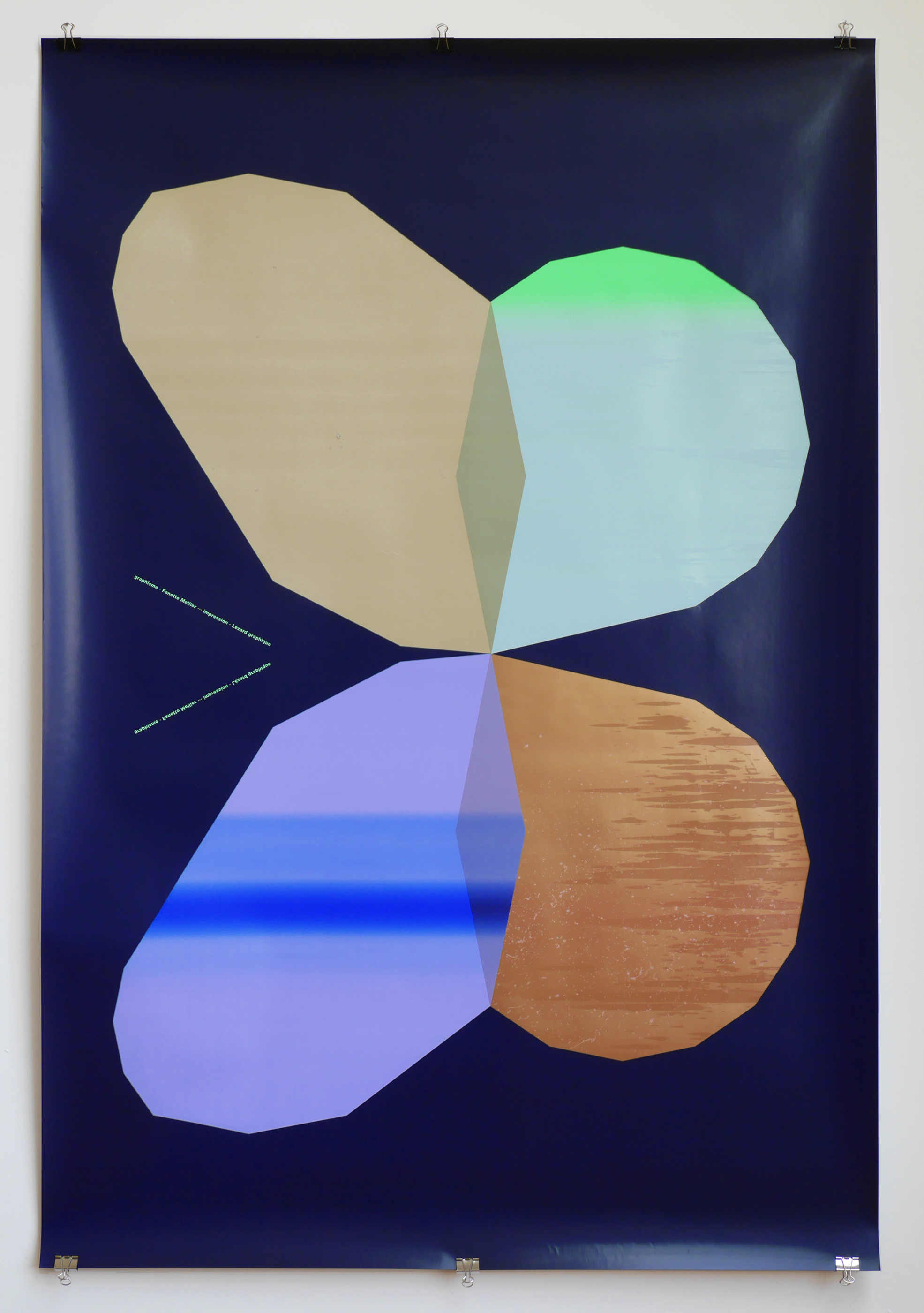 Cette affiche en série limitée est un Papillon dont les ailes forment un nuancier sérigraphique expérimental. C’est une version nocturne du Papillon de jour réalisé en 2013 pour Une Saison Graphique. Ce Papillon (de nuit) est une version plus subtile et poudrée. Il est surimprimé de vernis photoluminescent qui le rend visible dans l’obscurité…