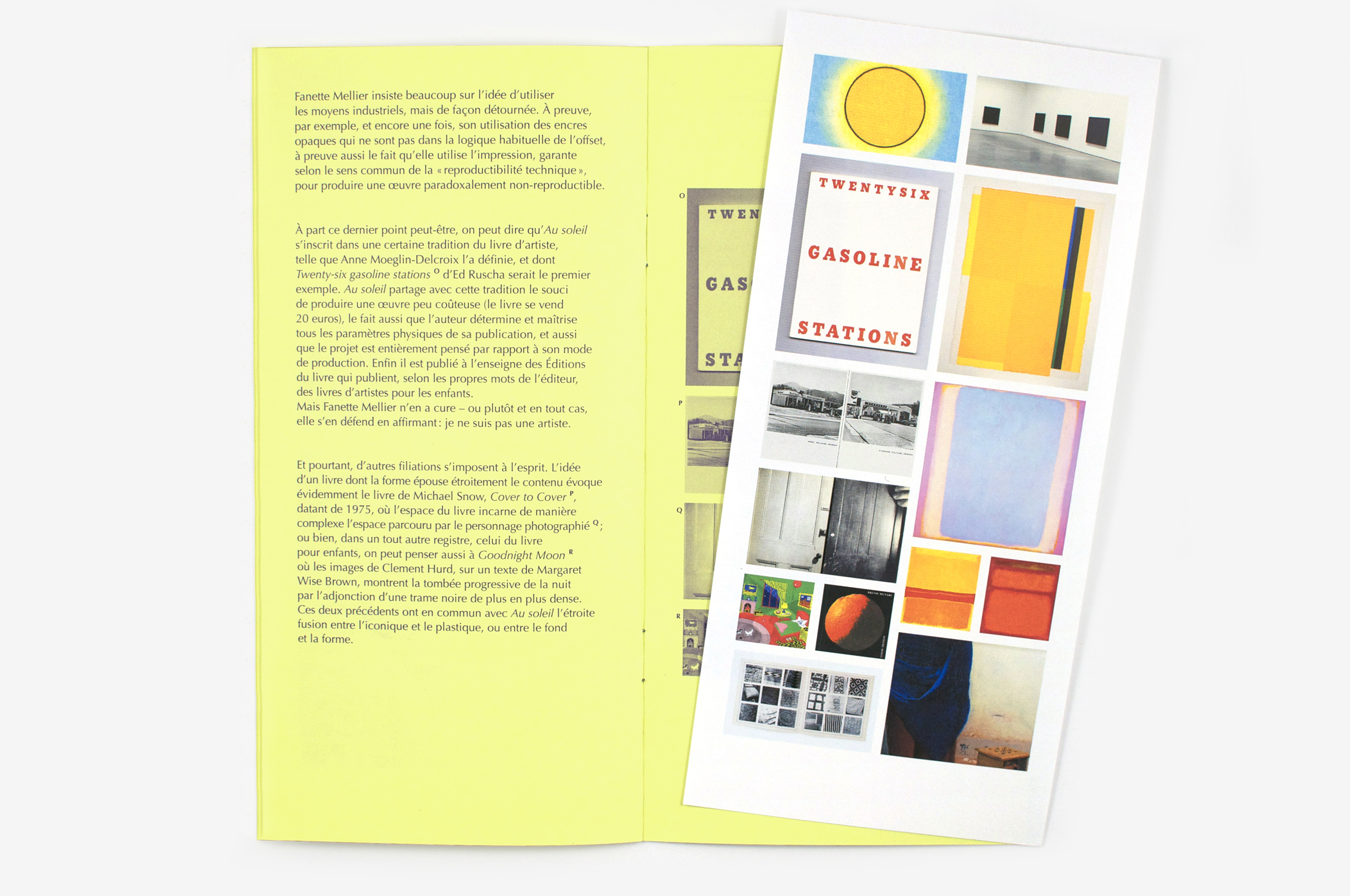 This booklet, published for an exhibition at the Petite Égypte bookshop, transcribes and illustrates a talk given by Paul Cox during the AGI Transmission Day at the Théâtre de la Colline in 2015. His discussion of the book Au soleil examines the pictorial nature of the book and the notion of multiplicity.