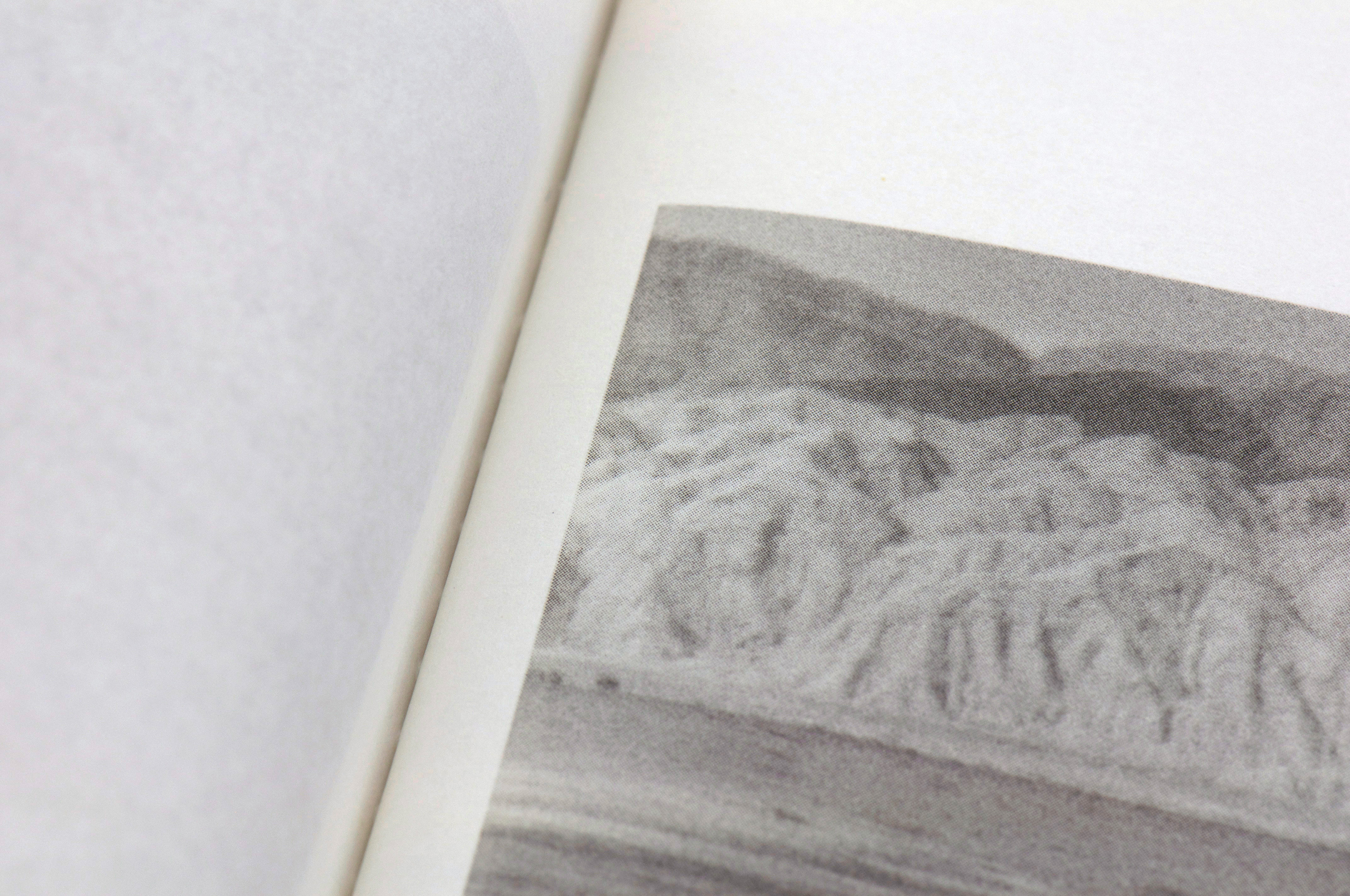 Dans ce livre d’Ariadne Breton-Hourcq, trois séries de photographies de paysages chinois, légèrement flous, avec des contrastes très subtils, se succèdent. La mise en page, systématique, rythme les légères variations entre les images, comme lors d’un voyage en train, il en résulte une sensation «hypnotique». Ce livre modeste, loin des standards habituels des livres de photographies, peut s’apparenter à un «carnet». Les photographies sont disposées entre une couverture «muette», sur laquelle est sérigraphiée en blanc translucide la trace du placement des images dans le livre, et un cahier central coloré comprenant les textes. La typographie, composée de très petites formes géométriques, émet une vibration, et exige la même concentration que la lecture des images. Des variations autour du vert sont présentes au fil de l’ouvrage: un vert d’eau de la couverture, un vert quasiment noir pour les gardes, un jaune éclatant par lequel la typographie bleue devient verte pour les pages centrales, et enfin un fil vert vif pour relier l’ensemble.